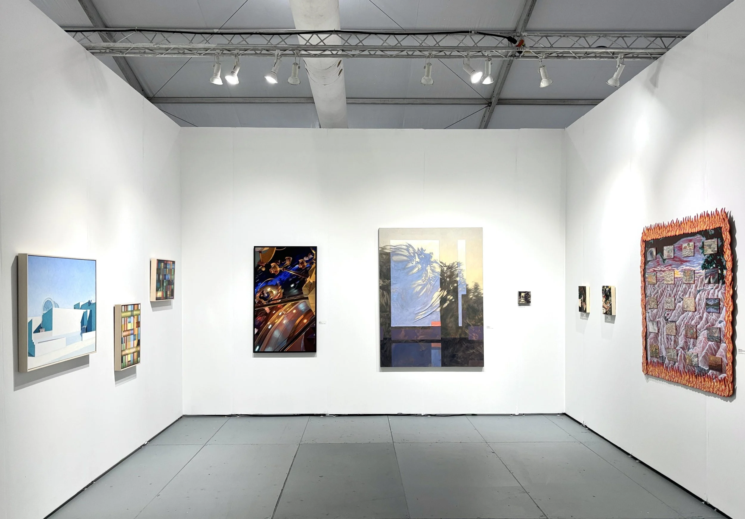 Kevin Yaun’s canvases blur the line between abstraction and representation. They play with color fields and architecture, geometry and landscape. They center the viewer in an ambiguous location: are we inside looking out? Are we outside looking in?