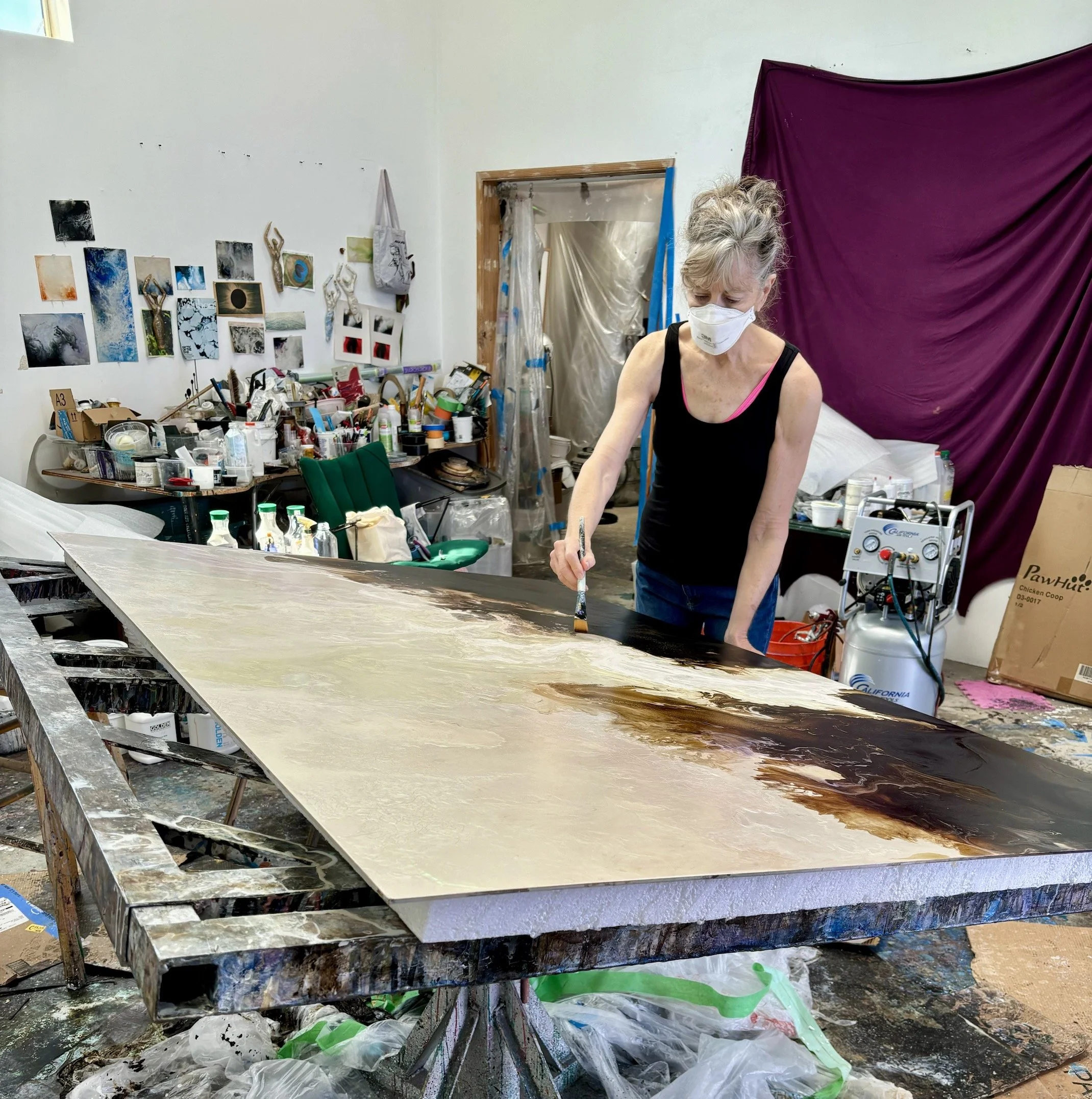 Over the last five years, Woodruff has survived the darkness of three major surgeries and radiation for near-lethal oral cancer. The surgeries left her unable to eat or speak for almost three years. For the first years after the main surgery, Woodruff’s focus was surviving - she describes a blur of just getting through each day. Returning to painting became a distant hope. Although eating and speaking remain difficult, Woodruff is driven by an internal fortitude - she pushed herself back into her studio practice with steadfast determination.